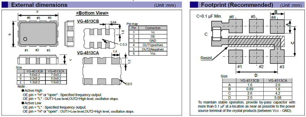 Epson's VG-4513 operates from a 3.3 V supply, is available with absolute pull range of > ±30, ±50, and ±100 ppm, and operates over a temperature range of -40°C to +85°C. The VG-4513 is in two package sizes. The CA package is 7.0 mm x 5.0 mm x 1.6 mm and the CB package is 5.0 mm x 3.2 mm x 1.3 mm.